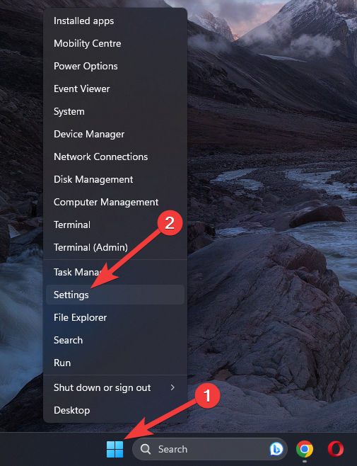 - Right-click the Start button and choose Settings.