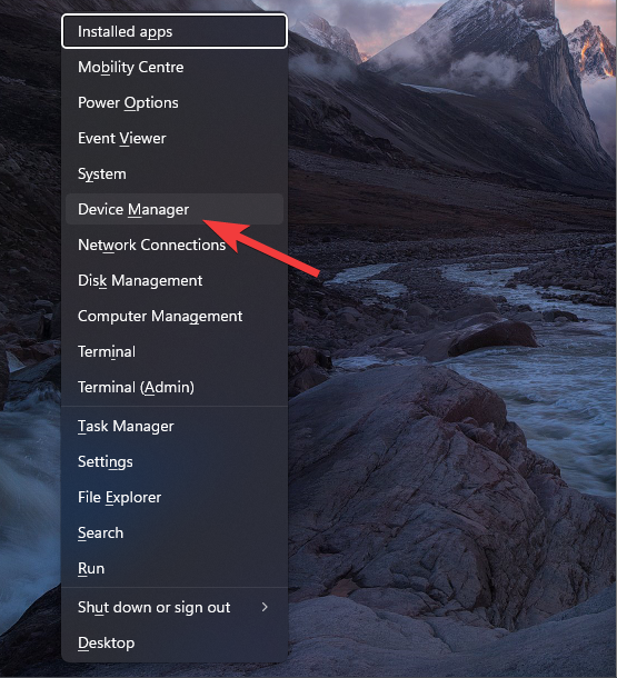 - Choose Device Manager from the list that appears.