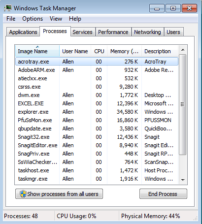 - Click the Processes or Details tab, depending on your OS.
