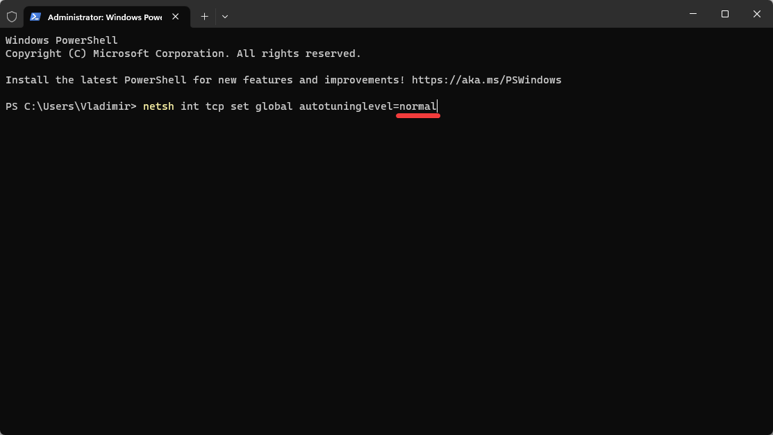 netsh int tcp set global autotuninglevel=normal