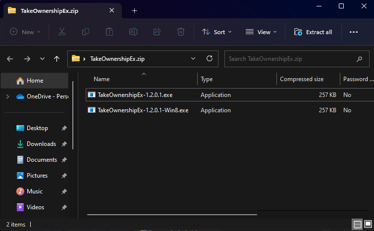 - Right-click it, and select TakeOwnershipEx from the context menu.