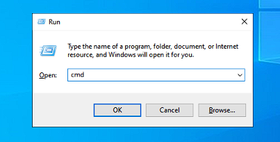 - Press the Win + R keys to open the Run dialog, type cmd, and press Enter to open it.