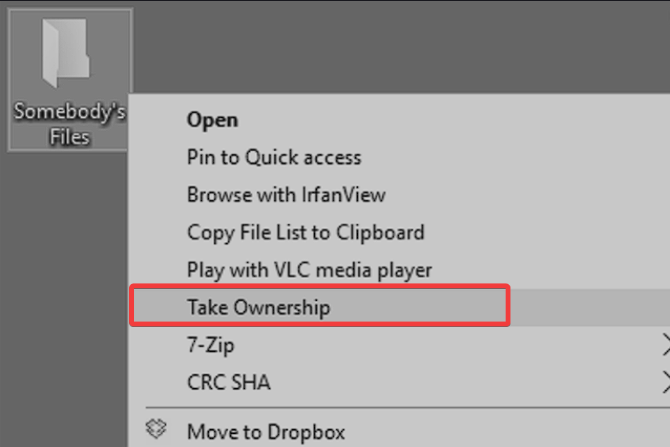 Note: Check to see if the Take Ownership option has been successfully added to the right-click menu.