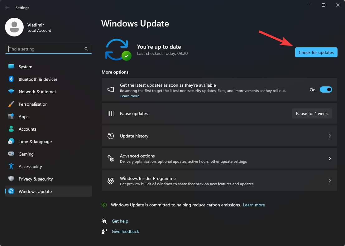 3. Select Check for updates.