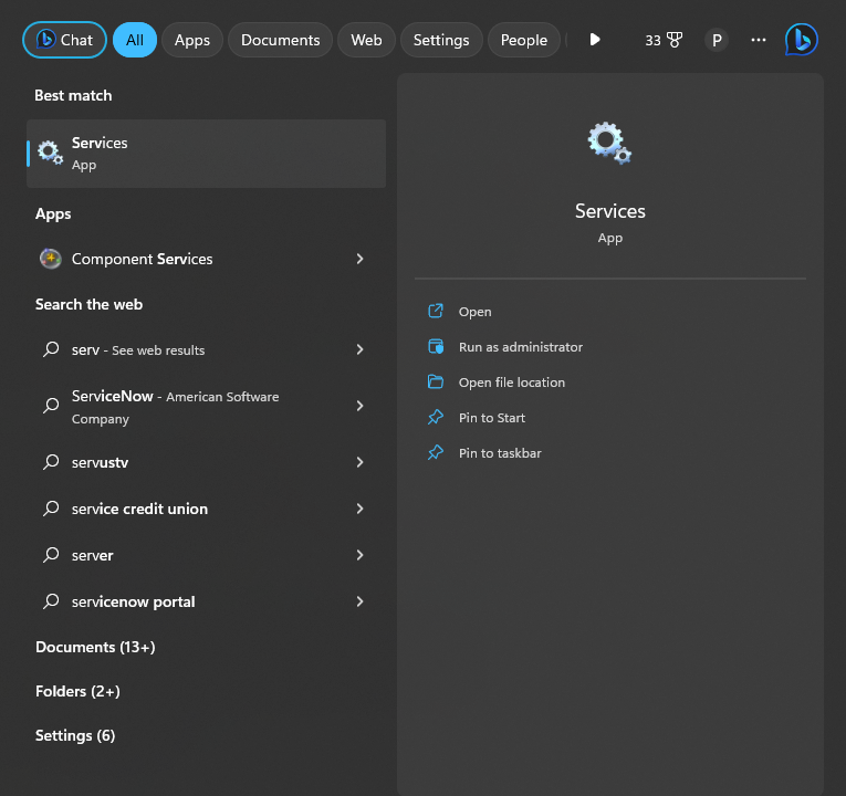 1. Restart the Firewall Service by opening the Services window inside the Start menu.