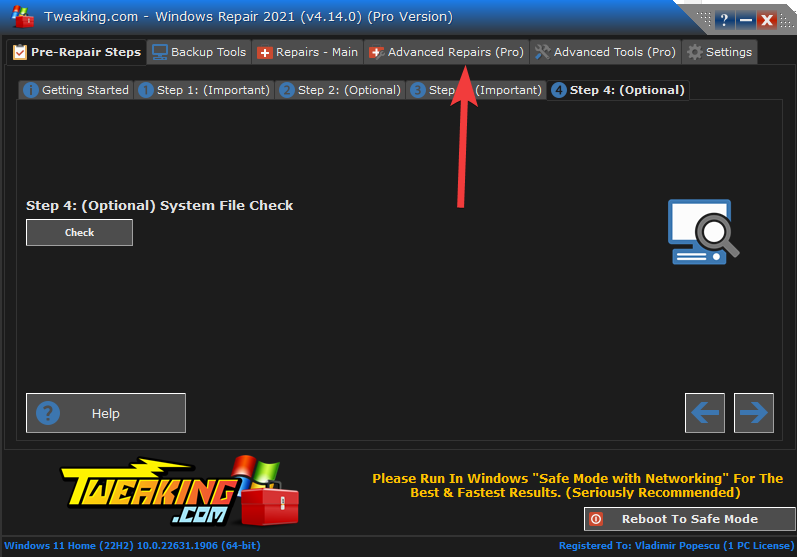 3. Click the Advanced Repairs tab.