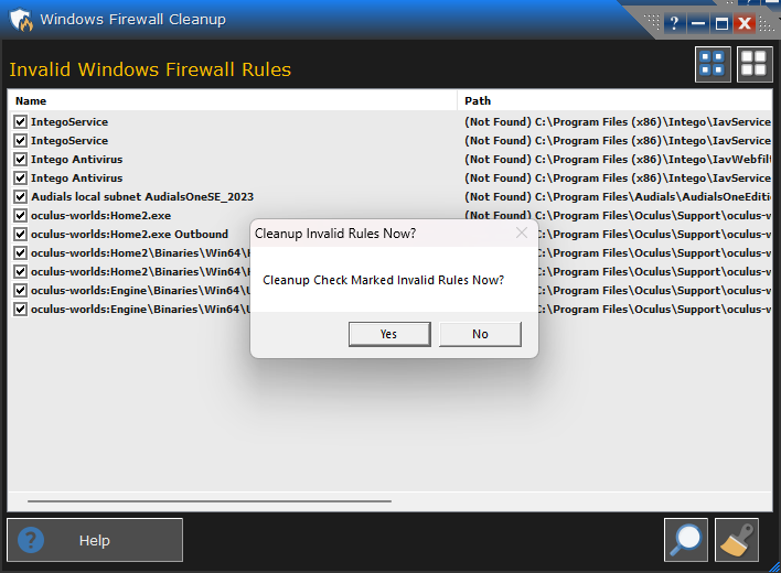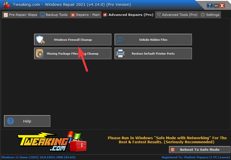 4. Click the Windows Firewall Cleanup button to initiate it.
