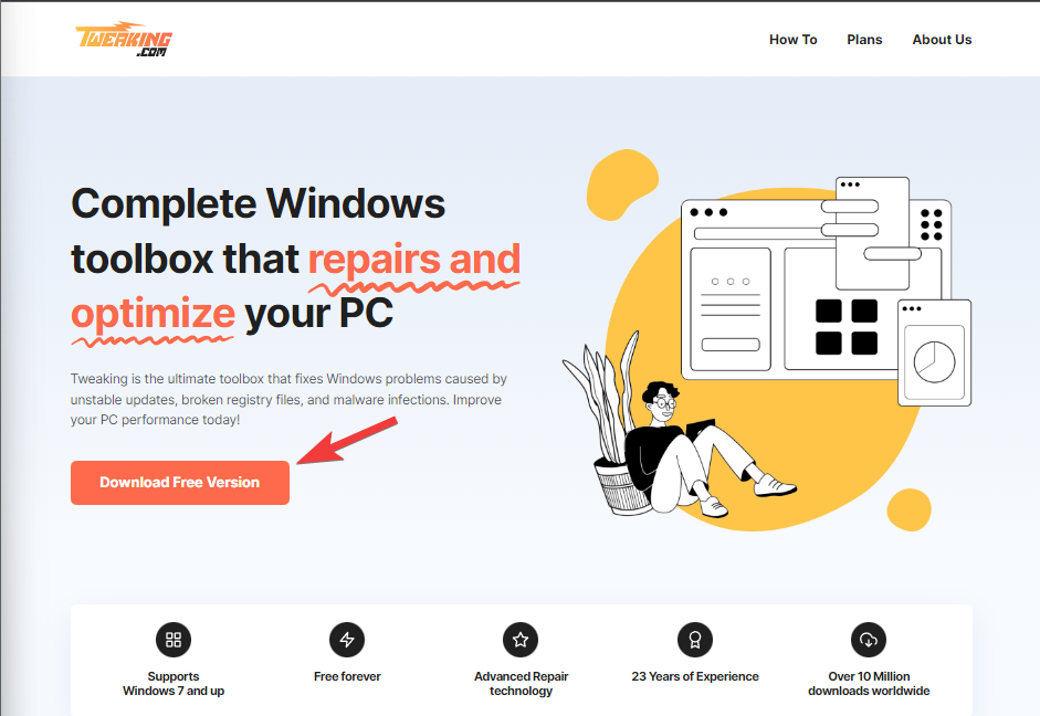 - Download the most recent version of the Tweaking Repair tool.