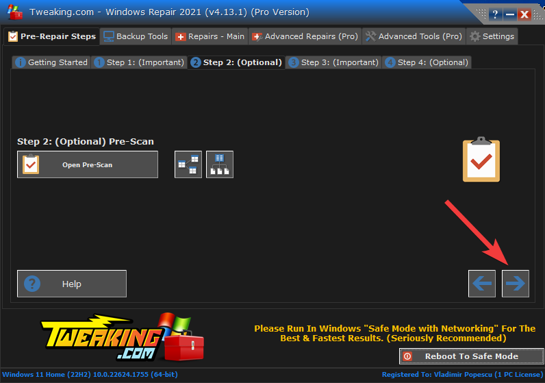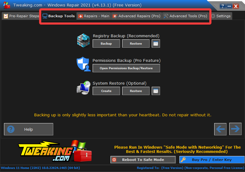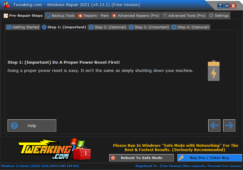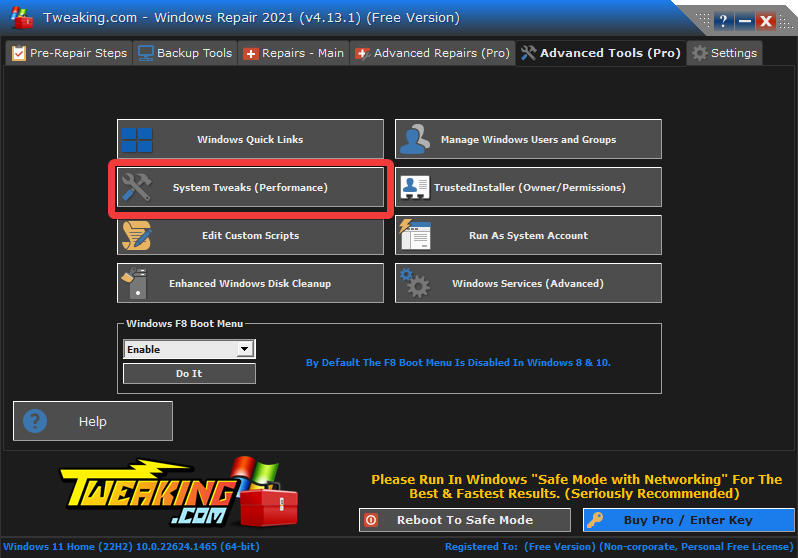 - Always run the Tweaking repairs in Windows Safe Mode – The best approach to ensure that third-party apps remain out of the way and to accelerate the repairs is to run in safe mode.
