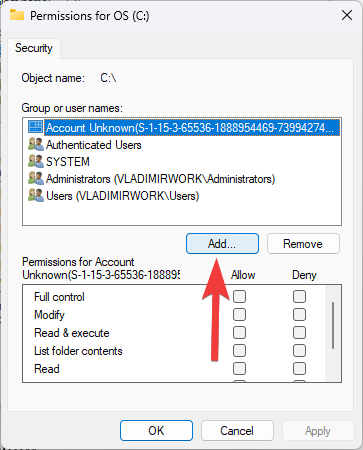 - In the Permissions window, click on the Add button.