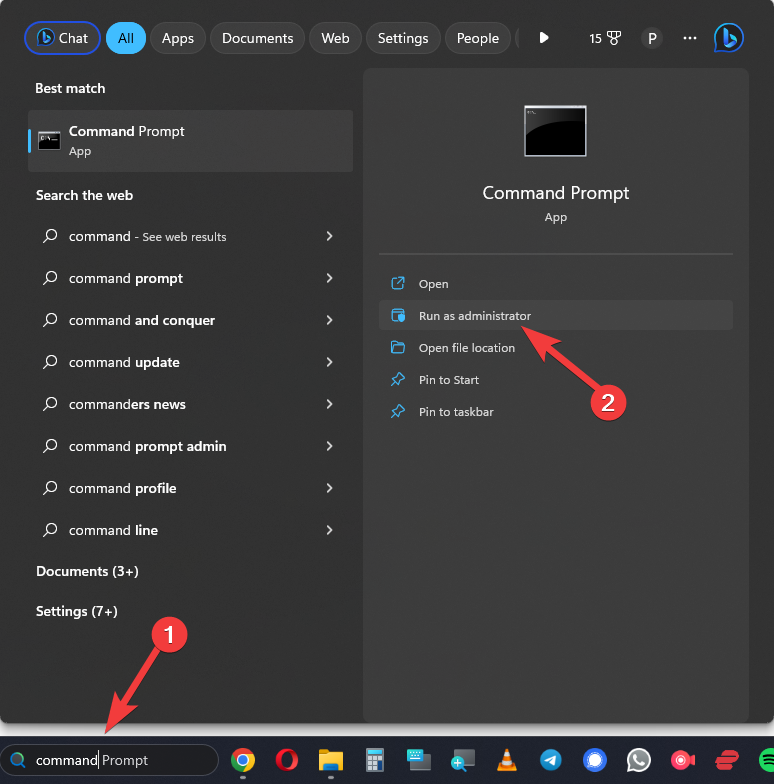 - Open Command Prompt as an administrator by searching for it.
