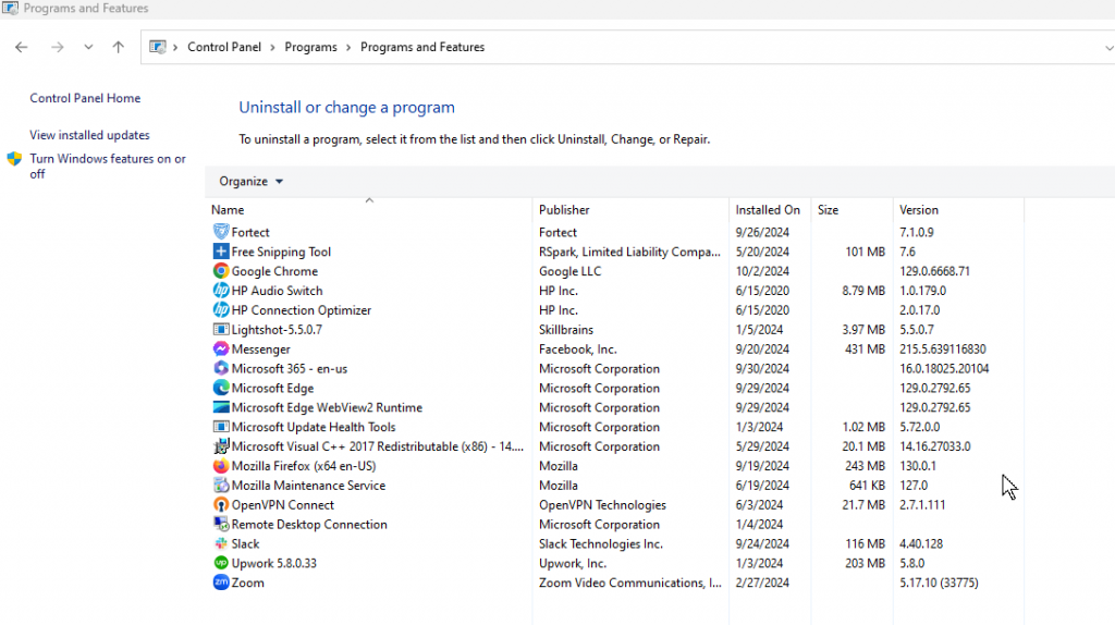 • Go to Control Panel > Programs and Features > Uninstall any recently added programs.