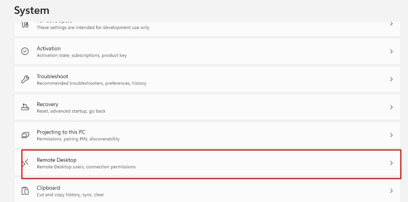 3. Find “Remote Desktop” and ensure both “Private” and “Public” checkboxes are checked.