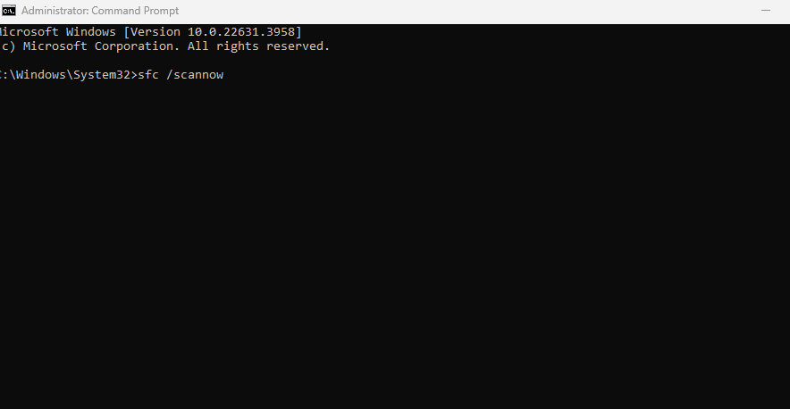2. Type sfc /scannow and press Enter