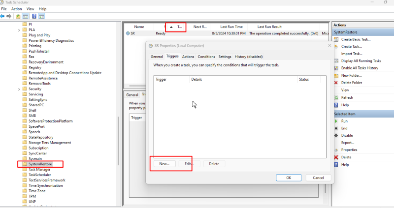 2. Navigate to Task Scheduler Library > Microsoft > Windows > SystemRestore