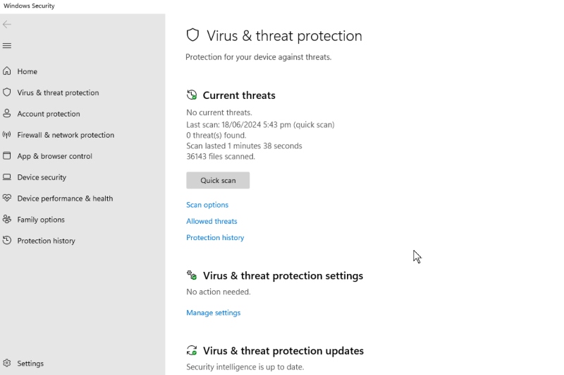 - Windows Security Scan: Go to Settings > Update & Security > Windows Security > Virus & Threat Protection and run a Quick or Full Scan.