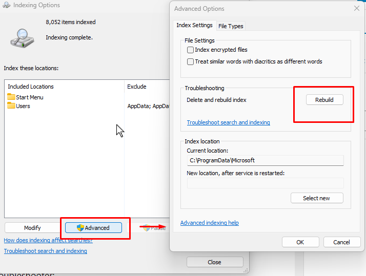 Rebuild the Windows Search Index