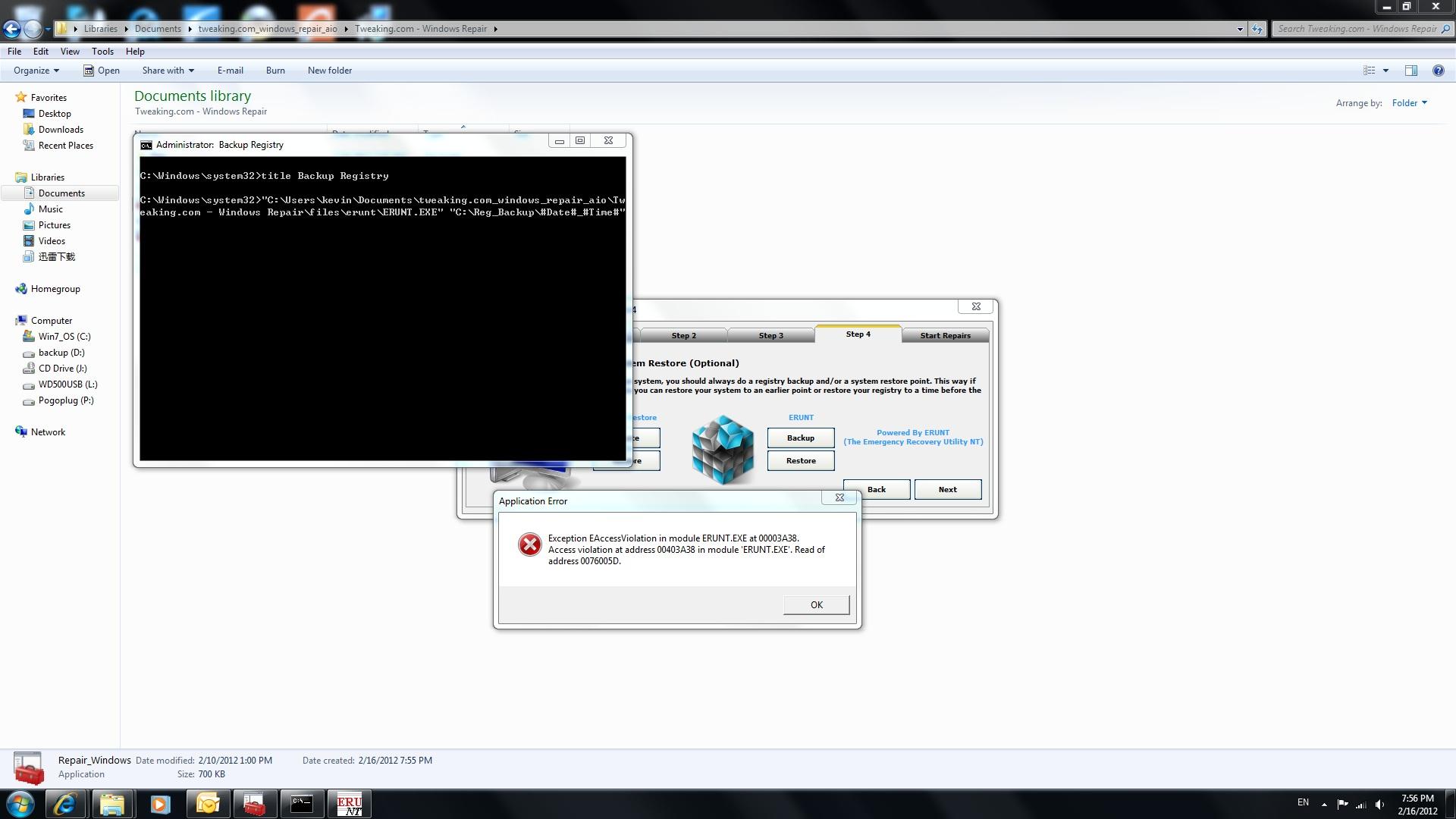 ERUNT BACKUP ERROR