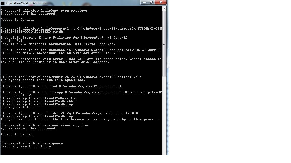 ren C:\Windows\System32\catroot2 catroot2.old