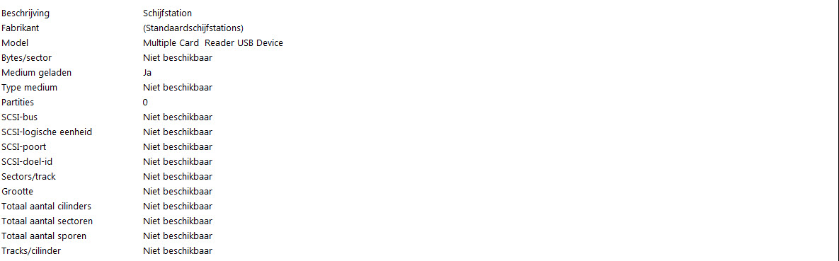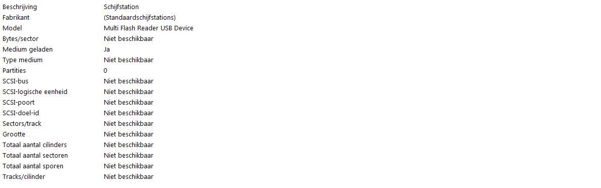 That's correct about the multicard readers. The 2 external hard disks attached have the Bytes/Sector 512.