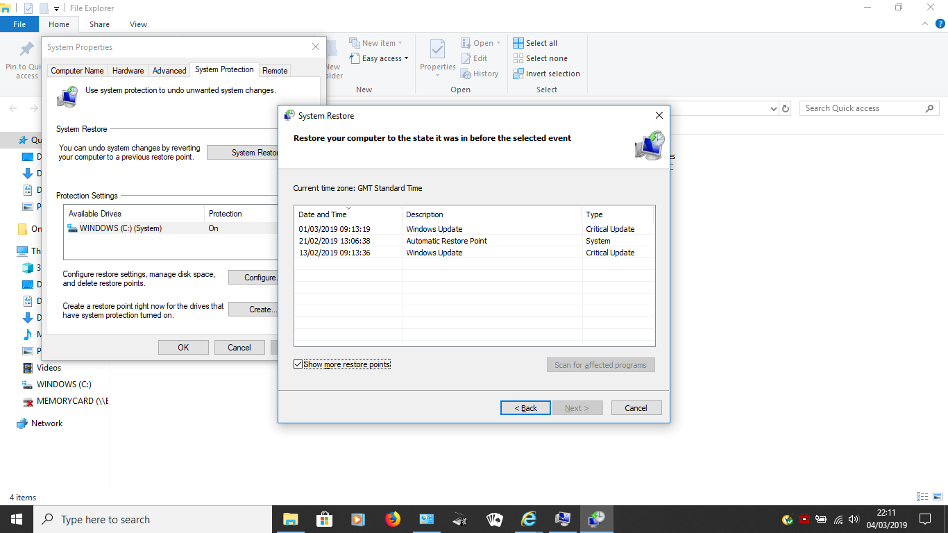 Sometimes when you only have one restore point showing, checking the box for Show more restore points can produce a couple more - have you tried that ?