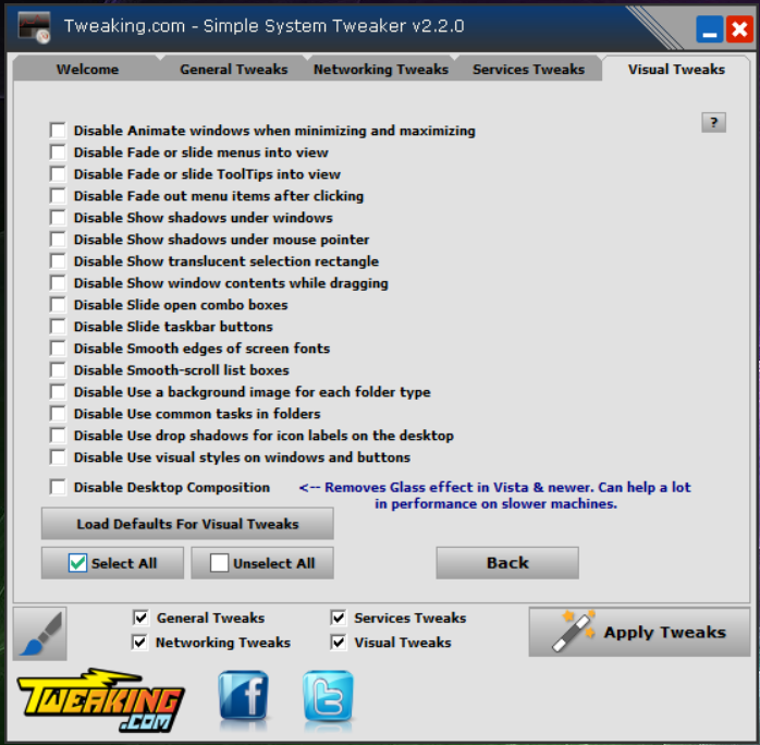 If you click on Next you can also disable those tweaks as well